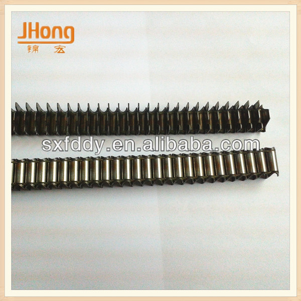 Product DescriptionBecause of the embedded style link with PE wire inside,our staple could neither fall Off easily nor get struck in the pneumatic gun easily. They are mainly used in the connection between the spring of mattress\sofa and rim.