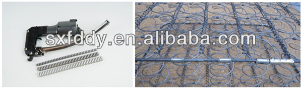 Because of the embedded style link with PE wire inside, our mattress clip could neither fail off easily nor get struck in the pneumatic gun easily. They are mainly used in the connection betwween the rim and the spring of mattress or sofa.