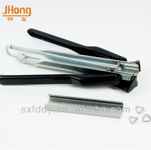 Application: pneumatic hog ring is mostly used forCar seat assembling,Spring mattress Engineering works,Interios, Wiring,Fencing,Golf nets, Insulation,Camouflaged nets, Gardening