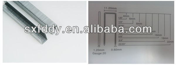 10series furniture staple1. Crown:11.20mm, Width:1.20mm, Thickness:0.60mm