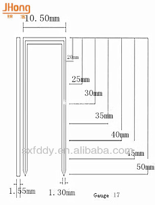 The specification of 16ga pneumatic galvanized industrial staple
