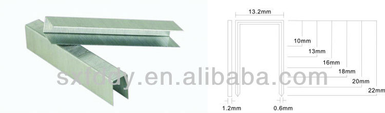 Products Details:Produnct Name:staple R88 or 1222J or 95/25 galvanized industrial staple galvanized industrial staple staple use the high quality galvanized material or stainess steel . Wiith high quality and convinent for using.