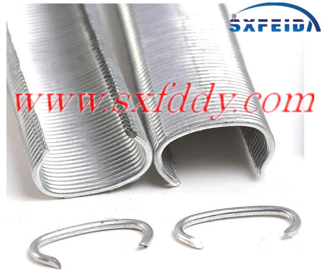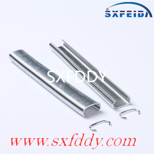 pneumatic hog ring and Hog Ring c ring for spring mattress use the high quality galvanized material or stainess steel adhered with hog melt adhesive to protect the staples from shedding and make it convenient for using.